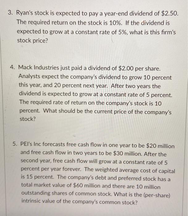 Solved 3 Ryan S Stock Is Expected To Pay A Year End Chegg Com